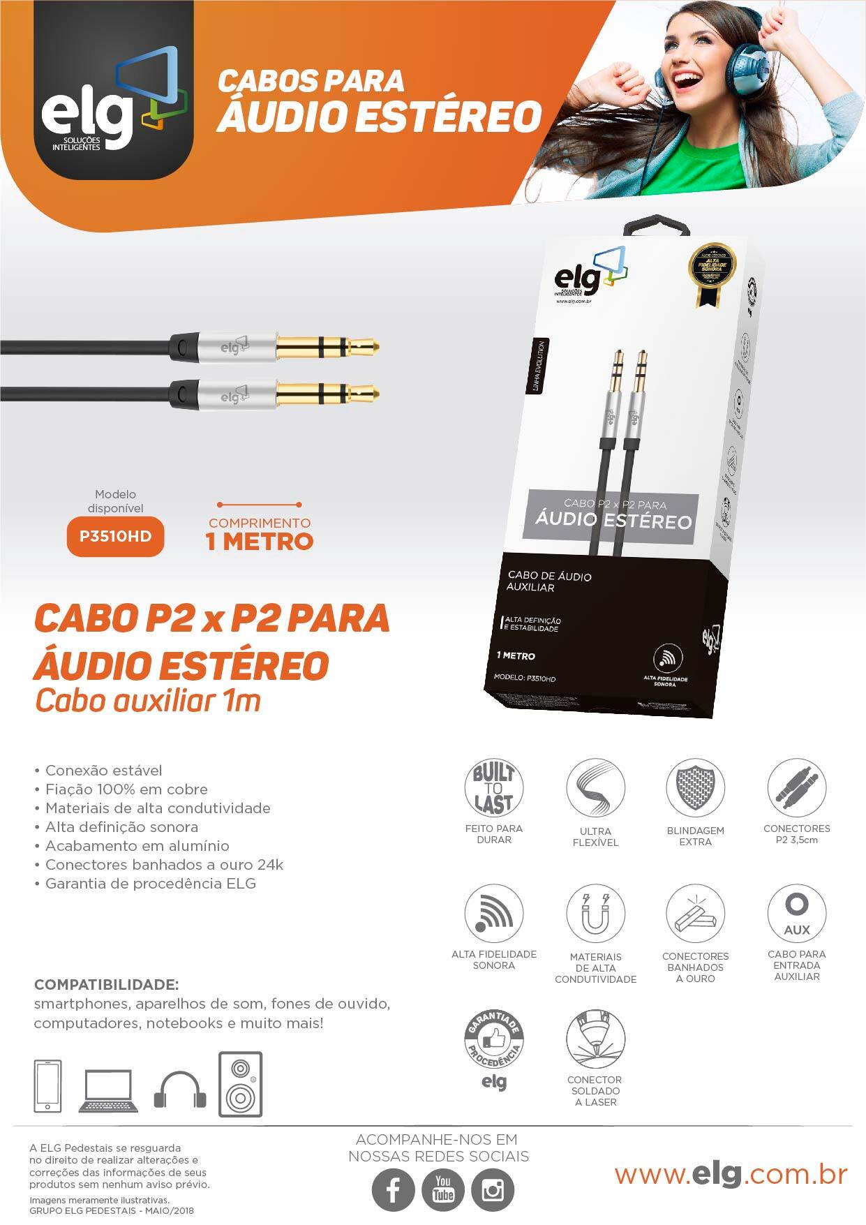 Cabo de Áudio Estéreo P2xP2 1m P3510HD Elg